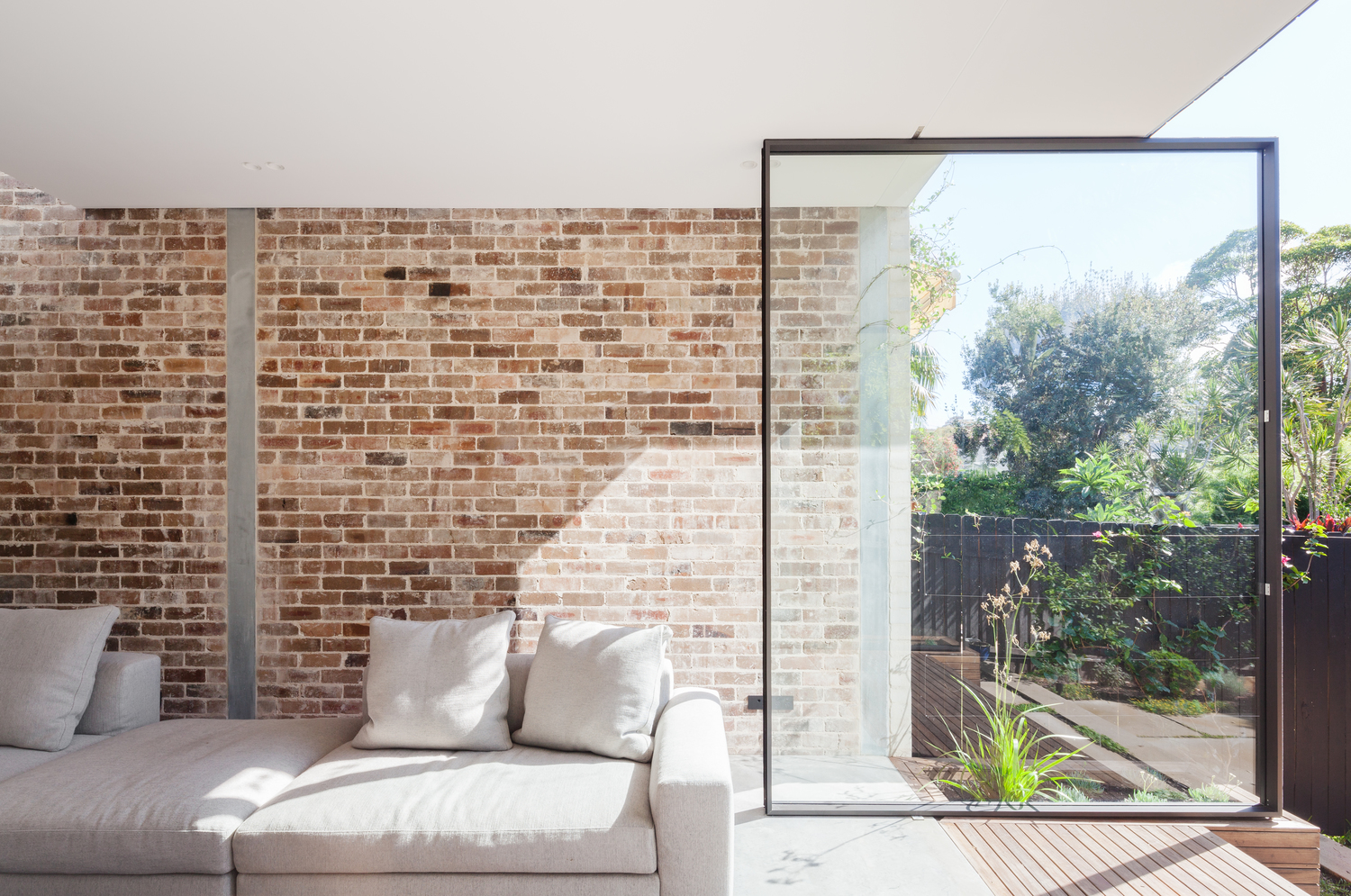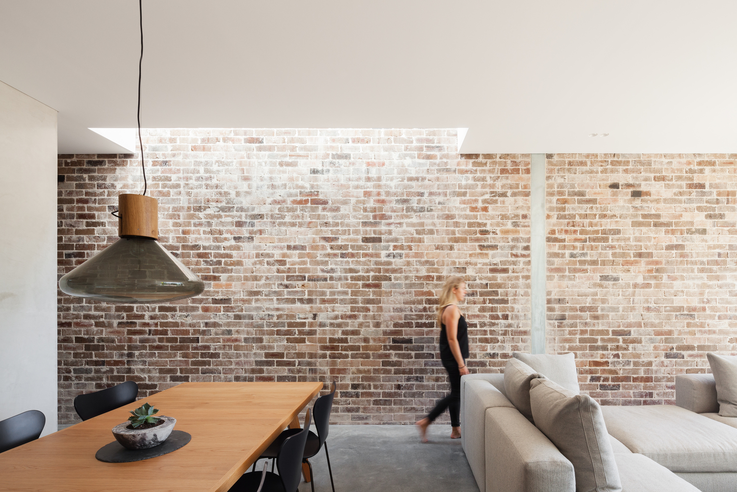 The D House cleverly integrates old and new, with a breezeway made of recycled bricks linking the original cozy home to a light-filled, split-level extension. The sloping site creates a functional division, with spaces that cater to privacy and openness. Large openings frame garden views and align with the breezeway, enhancing light and air flow. A linear skylight and pivot doors connect the living room to the garden, blurring the boundaries between inside and outside. Marston Architects’ attention to materials, light, and spatial flow delivers a calm, sustainable urban retreat in a dense neighborhood.