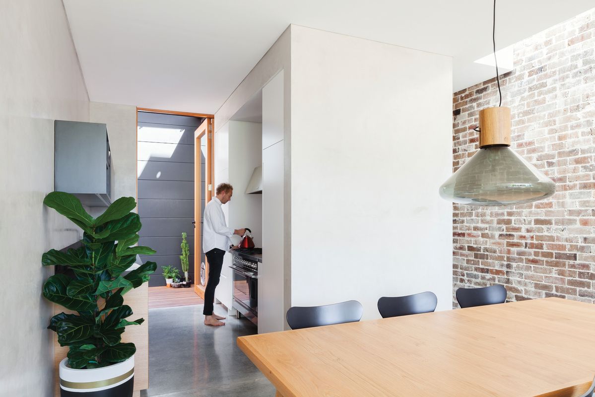 The client’s brief sought a home that embraced natural light, privacy, and a connection to the garden, while offering a retreat within a dense neighborhood. Marston Architects’ first move was to demolish a problematic kitchen extension, opening up the home to light and integrating new and existing elements. A northern breezeway connects the house to the street and garden, bringing natural light deep into the space and creating a new circulation path. Exposed original brickwork reveals the building’s urban history, with scorched bricks serving as a subtle reminder of a past fireplace.